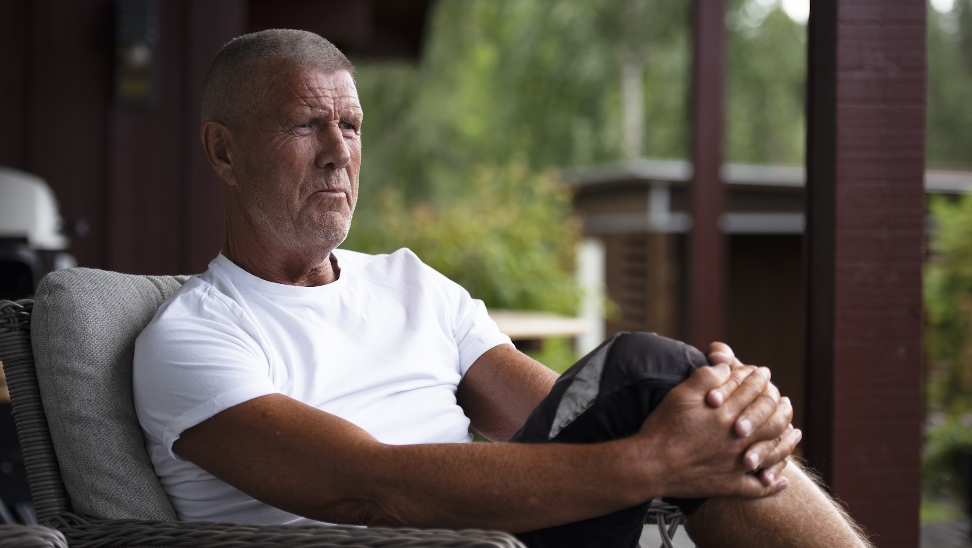 Stein Tore Haavimb serverer kaffe på terrassen hjemme på Kongsberg. Han og Marit var ofte her ute. De likte å ordne i hagen og gjøre det pent rundt seg. Denne sesongen har hagen også fått stell, men ikke med den samme gleden.