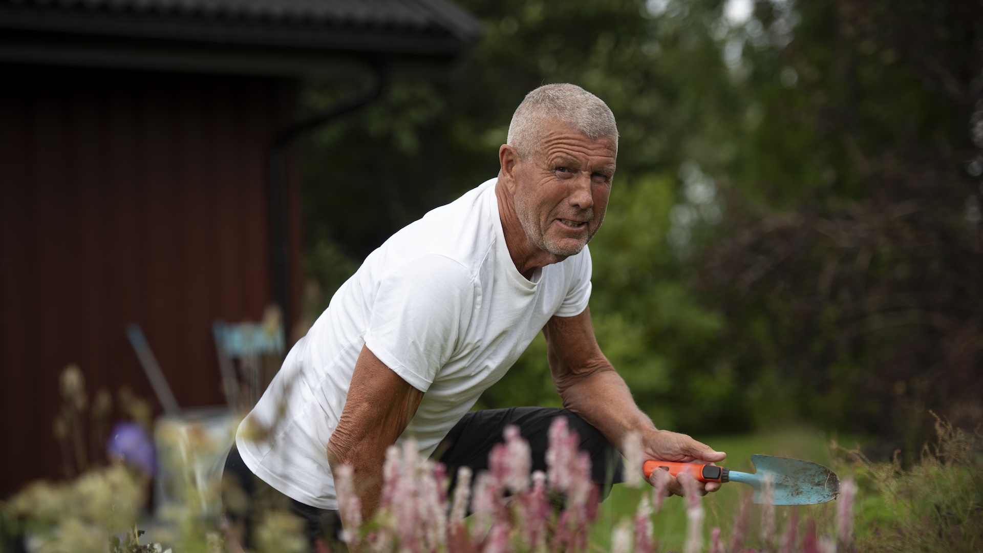 Stein Tore liker å trene og trives også med å være i aktivitet når han jobber i hagen, men hagestellet er ikke like lystbetont lenger.